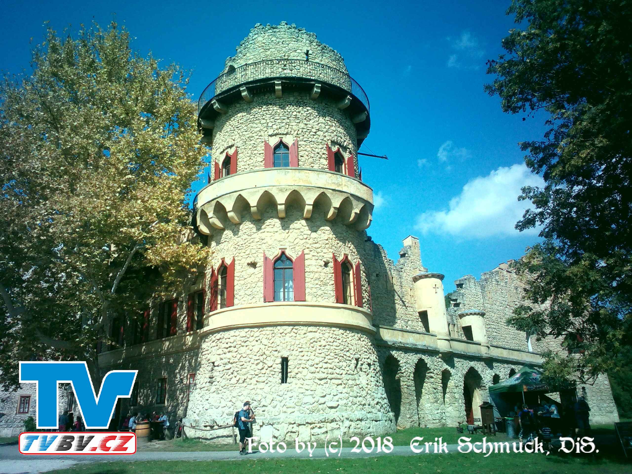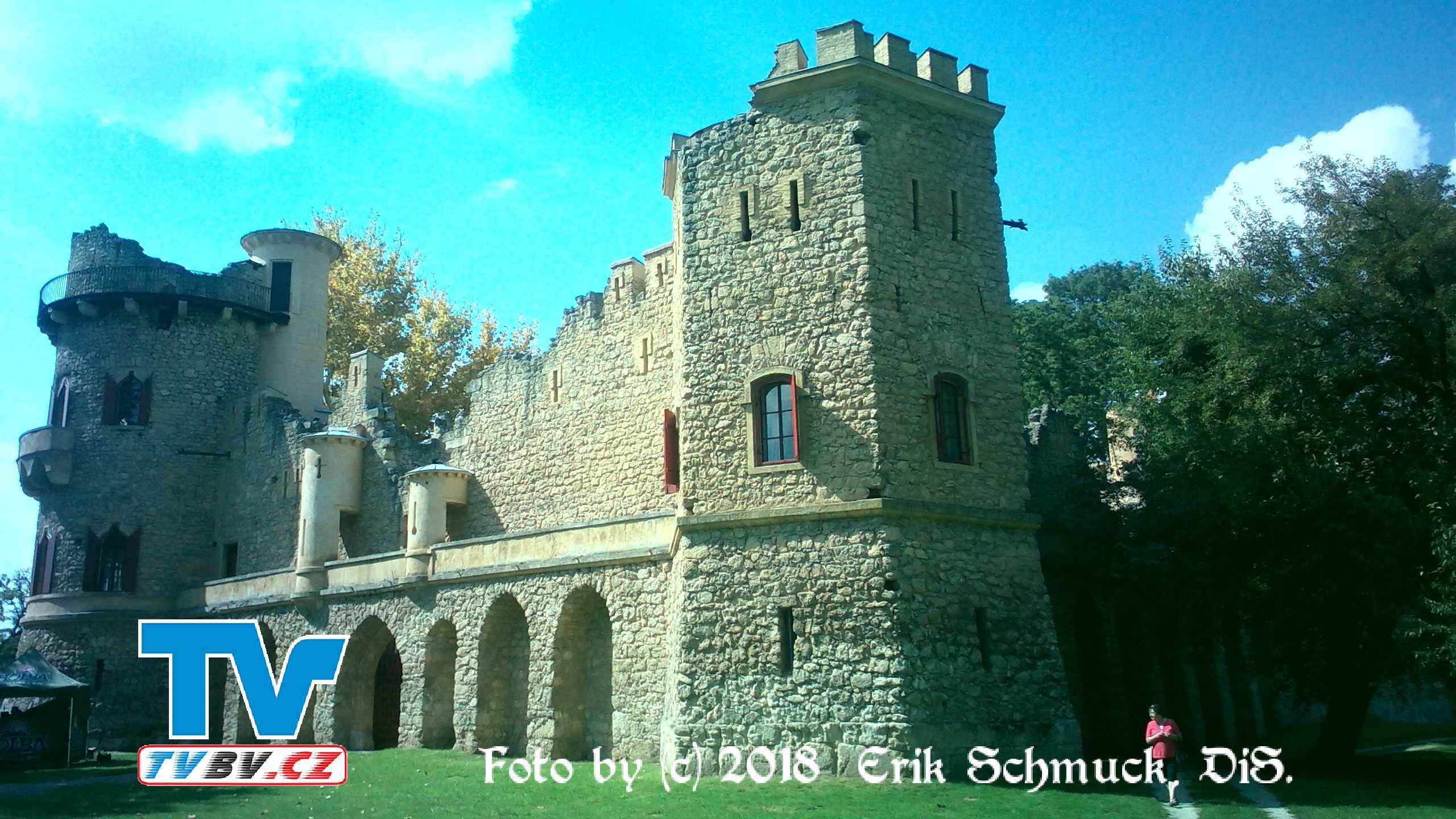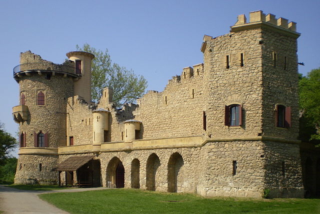 Nestabilní podloží lužního lesa bylo nutné zpevnit dřevěnými trámy a na něm pak byla postavena stavba z kamenů přivezených z nedalekého velkomoravského hradiště Pohansko. Architekt ve snaze postavit realistickou napodobeninu skutečného hradu dbal na každý detail, například tři točitá dubová schodiště udělal pravotočivá, podle zvyku ve starých hradech.